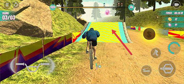 4、知道基础操作方式后就可以正式开始游戏啦,在骑行时驾驶自行车通过加速道可以让你的速度变得更快哦