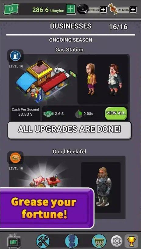 2、通过不断点击,你可以逐步增加收入,解锁新的业务和资源;