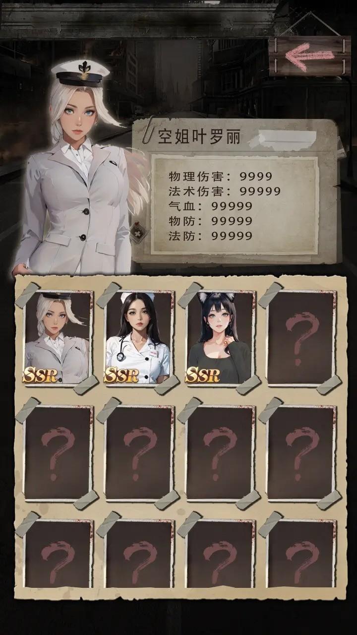 这是一款非常有趣的末日生存冒险游戏,玩家需要努力工作才能在这个世界末日中生存,你将踏上激动人心的冒险,在这个充满危险和僵尸的世界中生存,并建立一个使用自己的生存基地来招募更多的幸存者,仅限女性角色,收集并培养你最喜欢的女神角色,还可以通过婚姻系统与他们结婚,共同生育后代,未来消灭僵尸,恢复人类文明,成为最强王者。