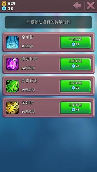 4、随机道具:点石成金、一击必杀的道具,助你顺利碾压敌人,无敌之盾和飞翔之翼将敌人远远甩在身后。