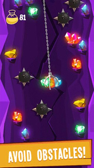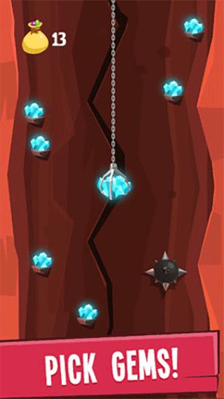 2、游戏中我们需要操控钩爪在地底抓取宝石和水晶,不过要注意躲开黑色的炸弹,否则他会炸掉你一个宝石;