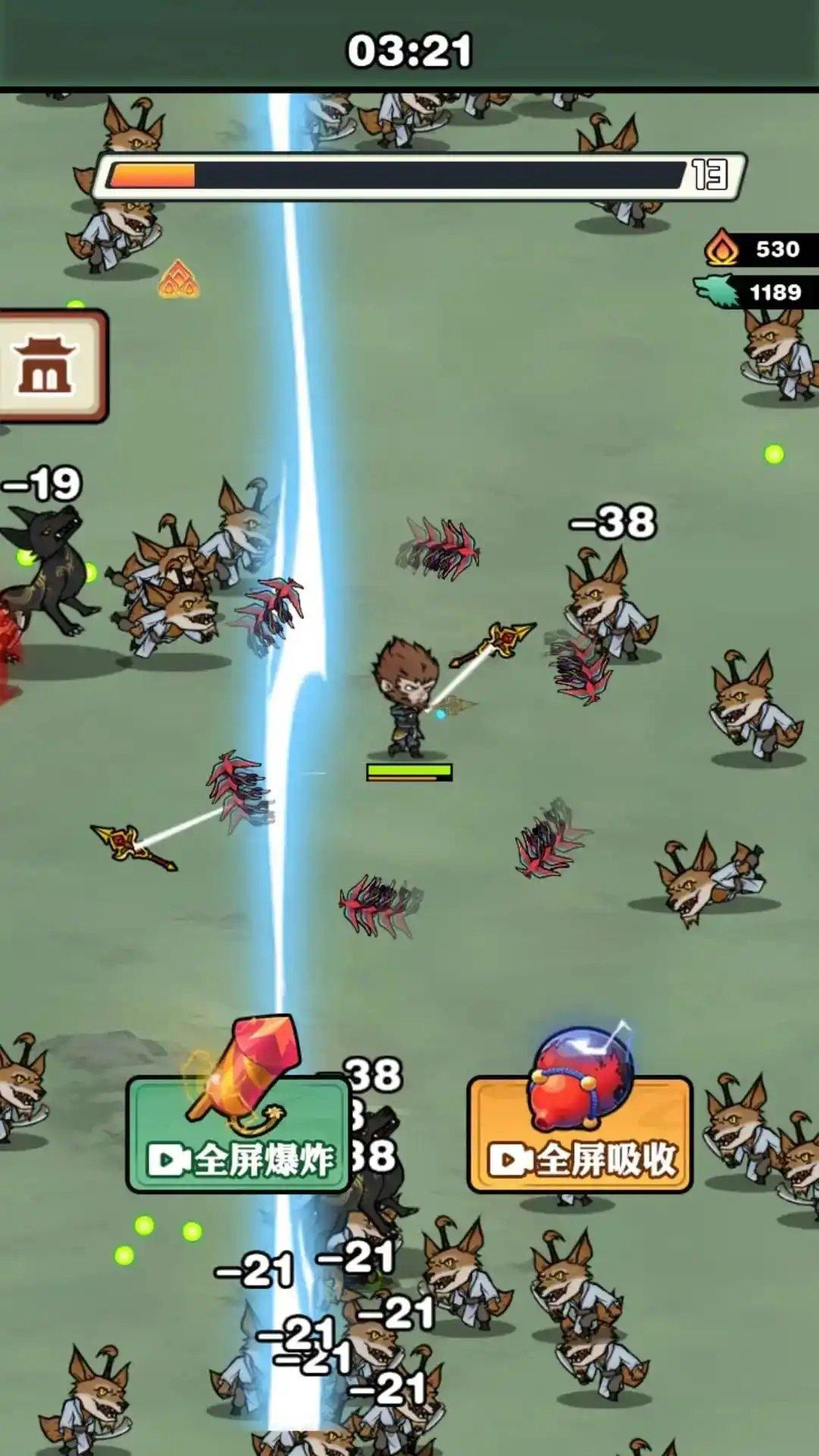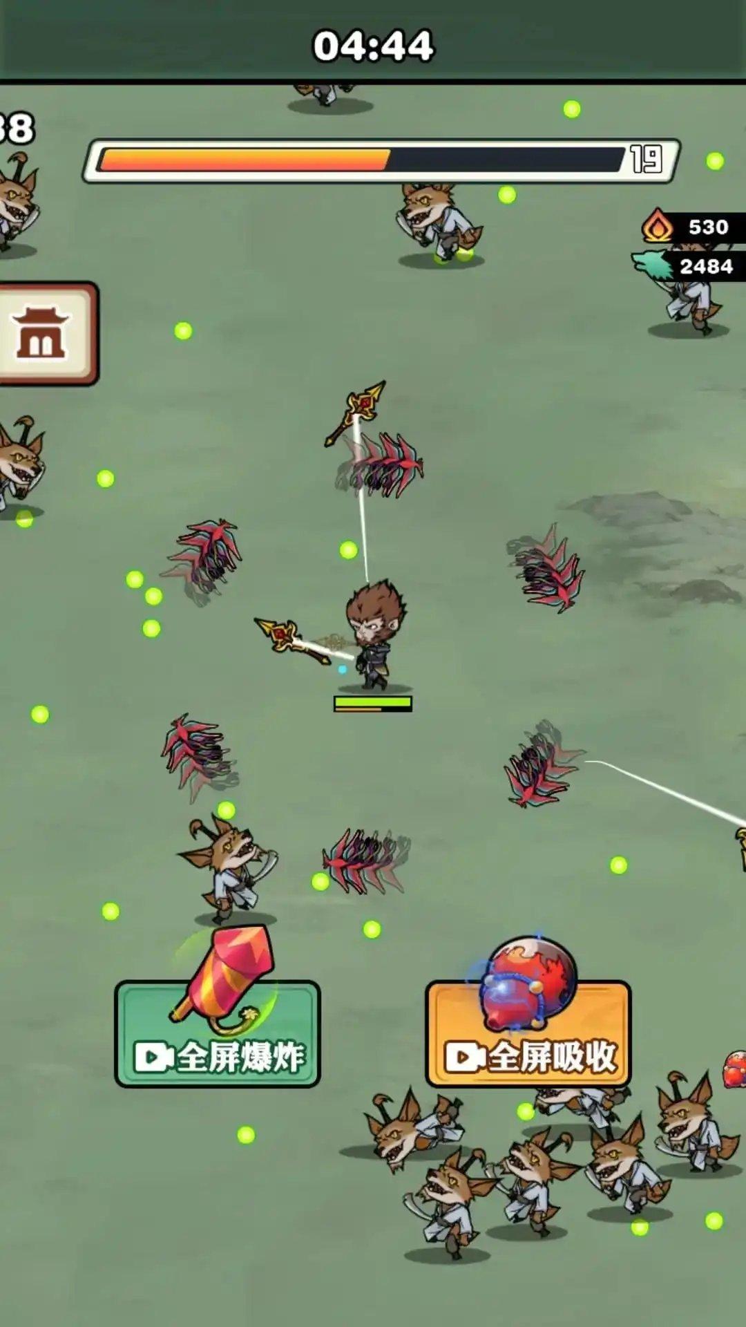 1、玩家将会操控着孙悟空来与各种怪物战斗较量,看你是否能生存下来;