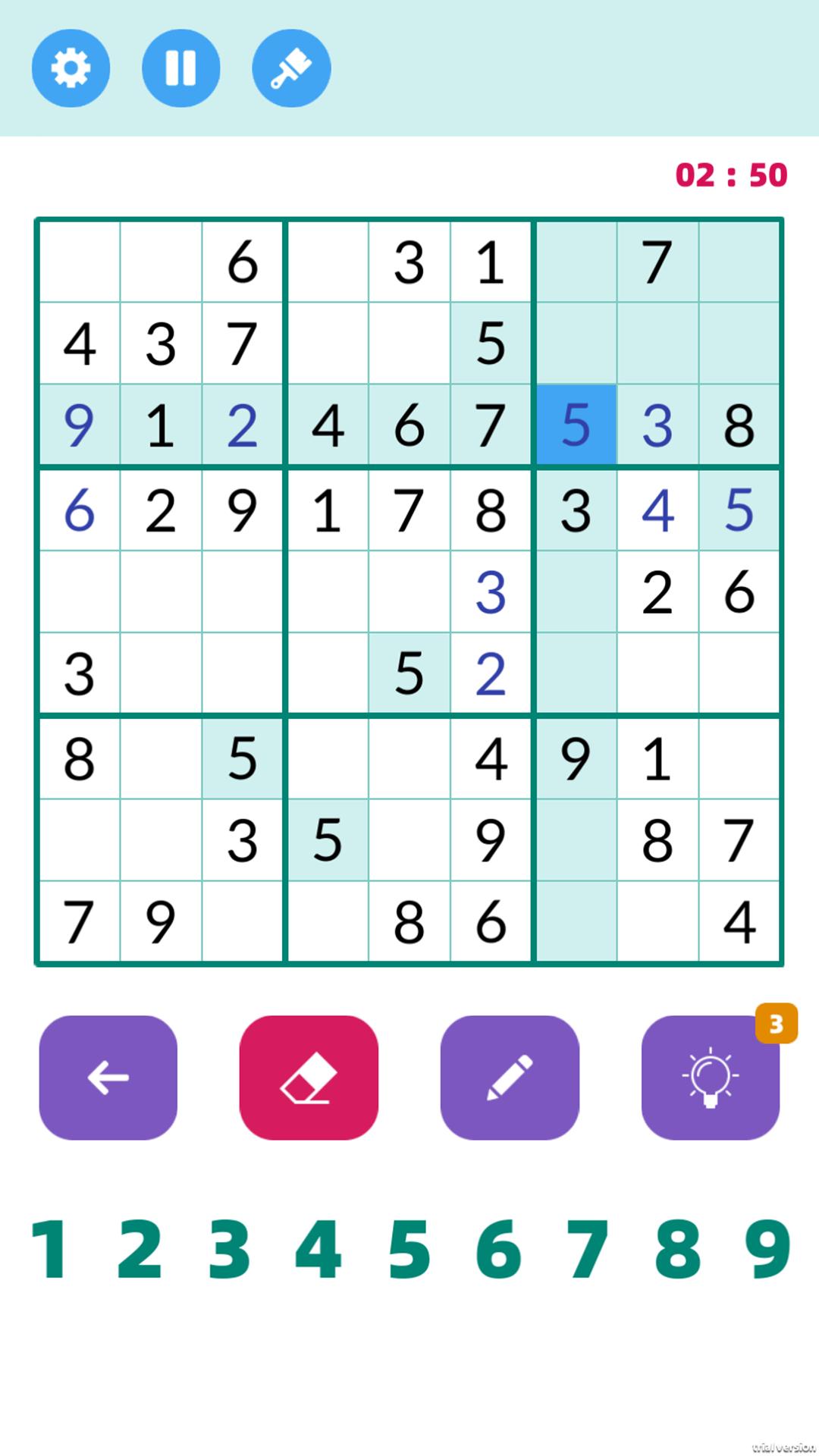 3.玩家可以通过逻辑推理,逐步填满空格,直至完成整个数独盘,非常考验脑筋。