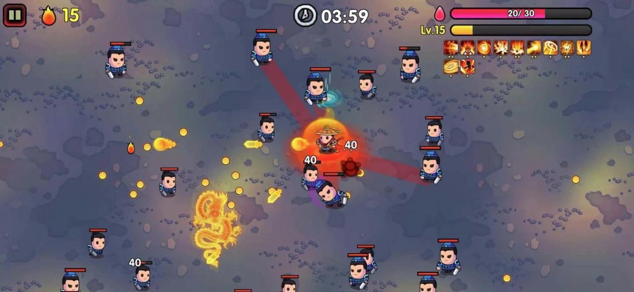 决战江湖光明顶是一款刺激的武侠冒险游戏。游戏采用割草游戏的玩法,游戏的背景是江湖世界,玩家将扮演一名江湖人士在光明顶中去其他门派的高手进行对决,您可以在战斗过程中提升自己的等级,获得更多的武功心法,学习到新的技能,您的杀敌之旅也会更加的畅快。