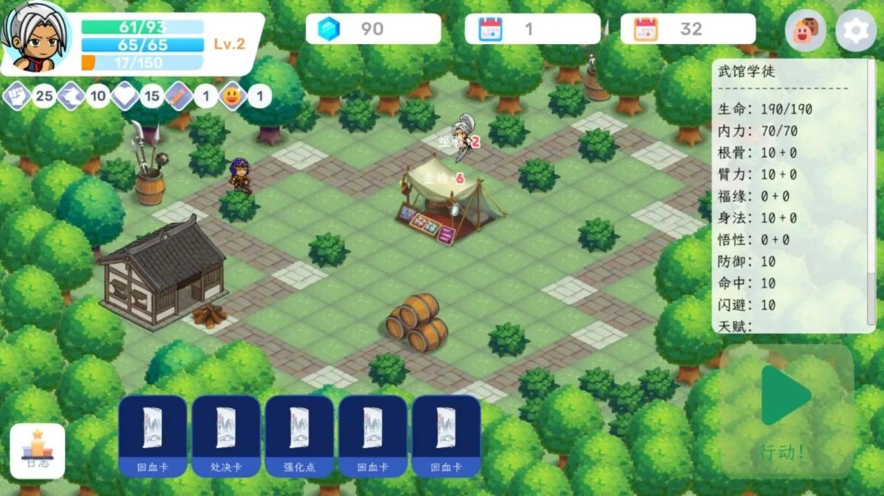 开始确实很难打,只能不断试错,把传承点打到6就好很多了,除了开始那几把,后面传承点直接爆涨,6点18点过了以后直接就76点了,开局内力恢复非常少,我都是点的特殊启蒙,选的内力恢复,加盾,再加上刀剑天才补个伤害技能,有这两个传承后天赋异禀必拿,刷个越战越勇出来,搭配浪击刷臂力,镖师剑法出伤害,图二最左边那四个是两个斜的火,只要出招就加臂力,两个一次加6点主要怕和其它格子挨着内力恢复不够所以单独把它俩隔出去,内力恢复不够就拿了两个一个空格回内力的,中期我是有点怕出手速度没有怪快,拿了个先发制人,天赋还有加血量的,刷怪得属性点的,根骨防御加成的,前两个技能重复一次的,名字没记住重要的就这几个。
