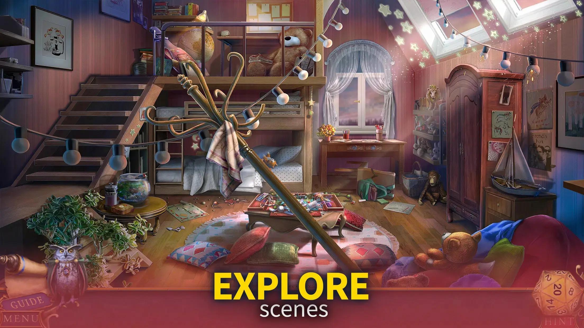 发挥您的观察力,找到所有隐藏的物体。在这个迷人的游戏中,浏览精美的迷你游戏和脑筋急转弯,解决非凡的难题,并收集隐藏的线索。