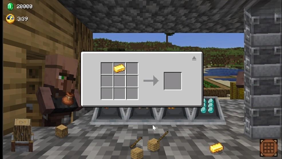 4、用工作台组装各种物品,完美制作成功后给村民就能够获得大量的绿宝石。