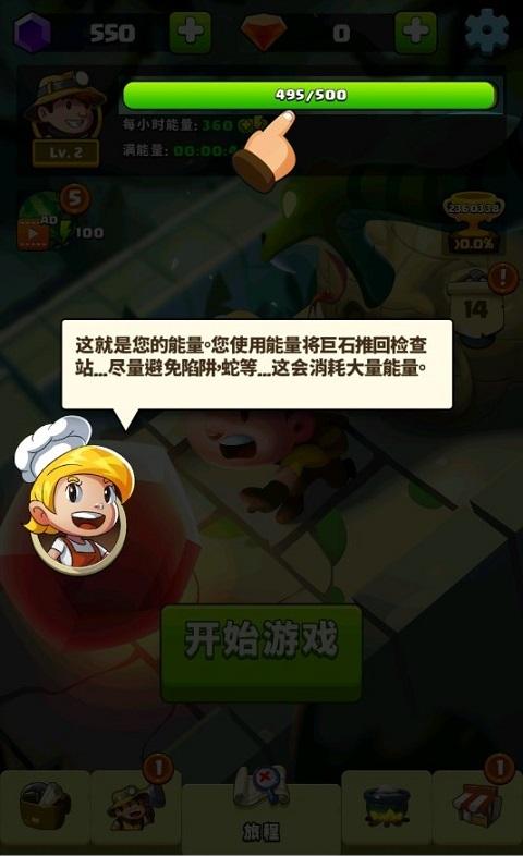 6、这里就是你的能量,在您使用能量将巨石推会检查站,应尽量避免现金,蛇等,这会消耗大量能量。
