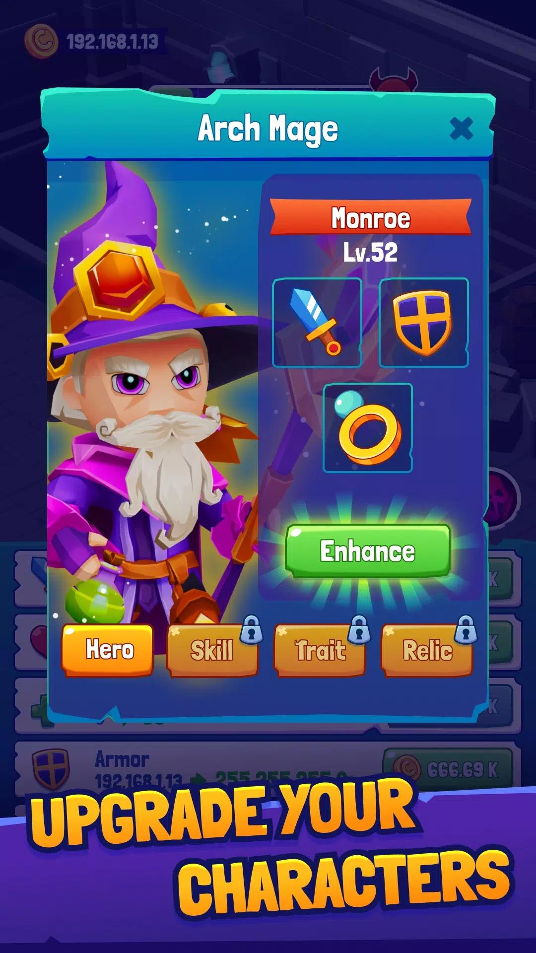 在这个令人上瘾的闲置角色扮演游戏中,带领一队英雄穿越地牢!在这款令人上瘾的闲置休闲 RPG 游戏中,在神奇的奇幻世界中踏上史诗般的地牢爬行冒险。