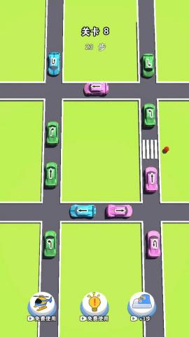 1、玩家需要在规定的步数内,通过点击操作移动所有车辆,以开启新的场景。