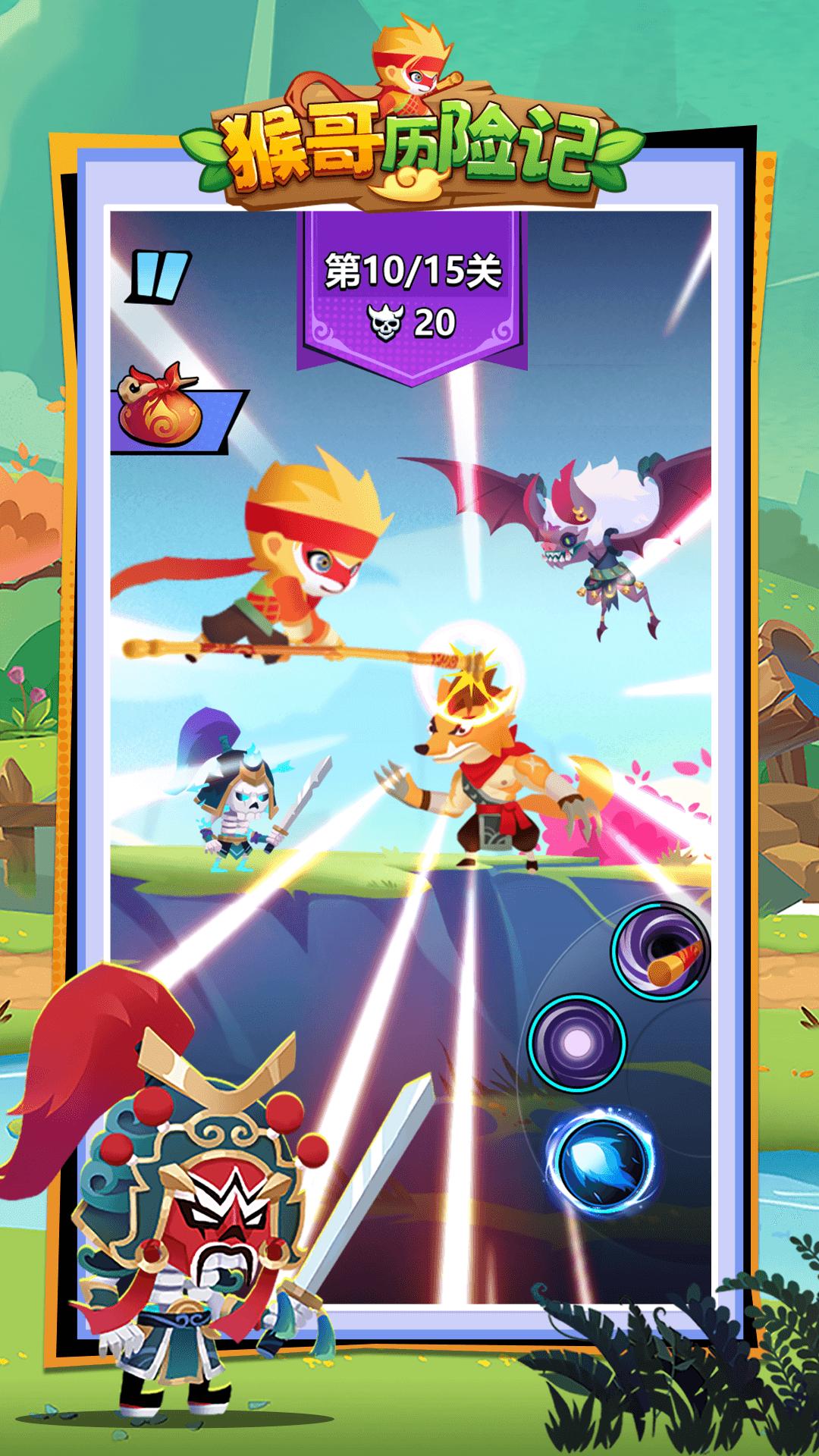 猴哥历险记游戏是一款以西游作为背景的角色扮演游戏,这里为大家带来的是免广告获得奖励的版本,玩家会控制猴哥在各个关卡中战斗,用自己的技能打败关卡中的各种怪物,获得更强大的装备,进行全新西行之路的探索。