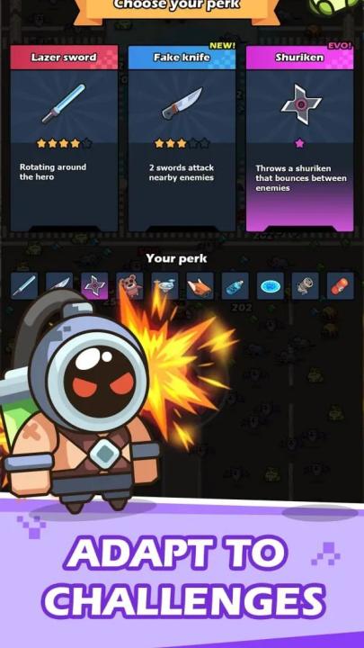 1、经典肉鸽割草玩法,通过击败敌人获取升级资源。