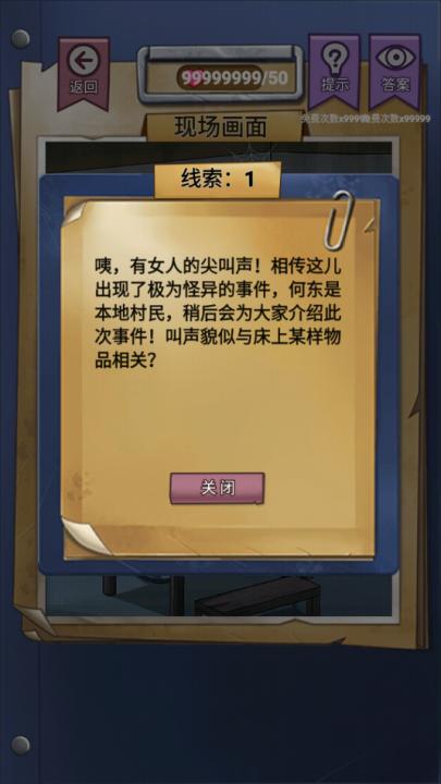 10、每关都有全新挑战等着玩家,一步步搜寻线索,根据文字线索解开谜团。