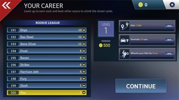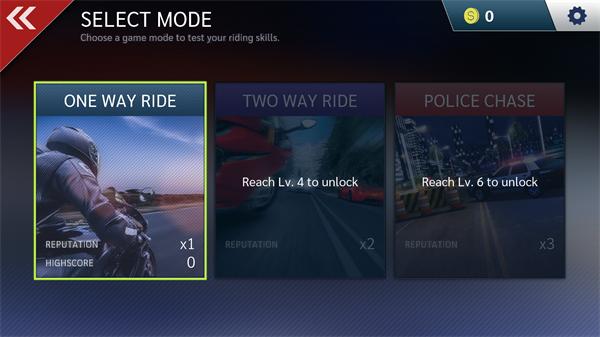 3、游戏里玩家们不需要前进或者是后退,玩家们只需要控制车辆左右移动就可以控制游戏游玩,游戏里玩家们通过关卡即可获取大量的游戏奖励,使用奖励还可以升级摩托车的性能;