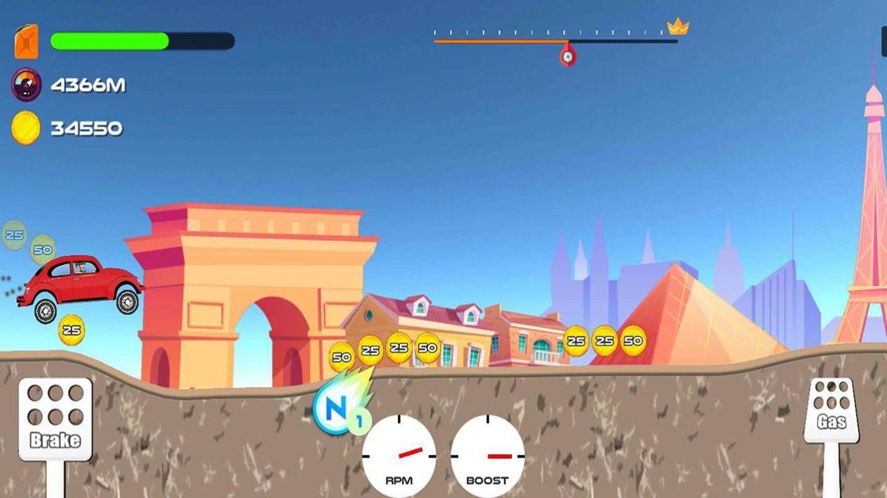 越野大是一款卡通清新的驾驶闯关游戏,游戏的面十分唯美且具有气息,玩家需要驾驶汽车不断通过每一个坡道,在颠簸的路面上稳定前行,超多关卡为你带来精彩的游戏挑战,快来提升自己的驾驶吧。