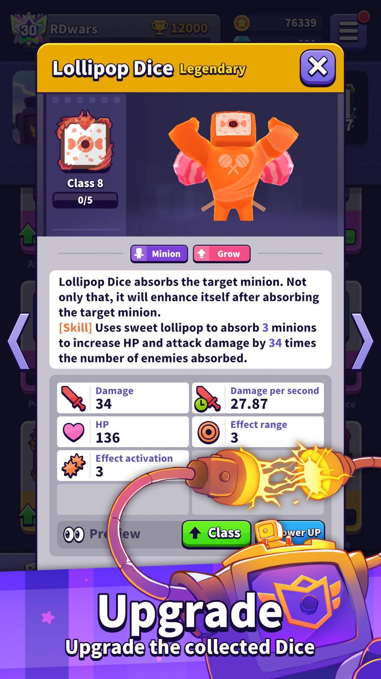 骰子是一款策略对战风格的游戏,玩家需要解锁各种骰子,来进行的。不同的骰子拥有特殊的能力,通过自己的理解来搭配阵容,然后才能够有足够的战力,和出现的对手进行PK。卡通风小清新界面,烧脑的非常刺激。