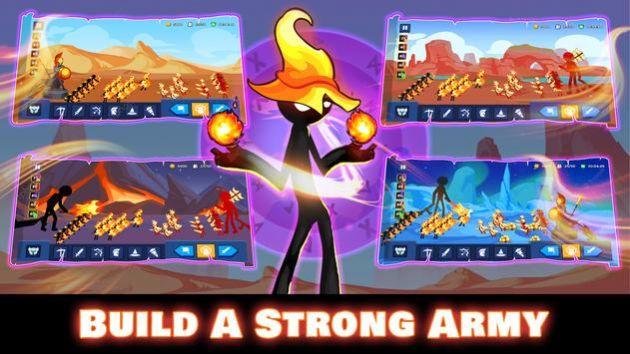 1、火柴人卡牌策略类游戏,玩家在游戏中需要经营各种和兵种;
