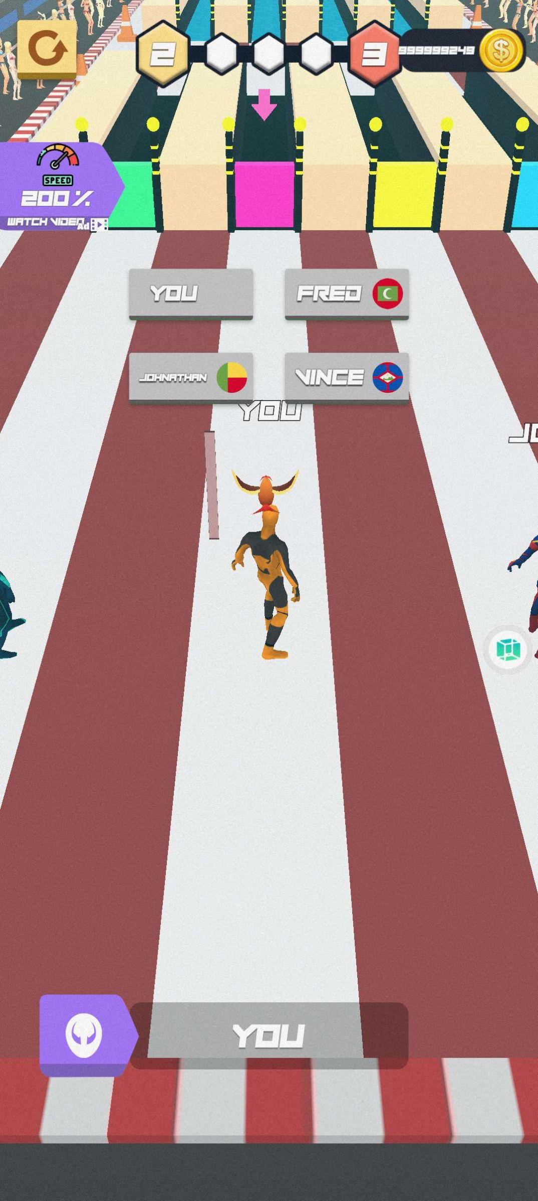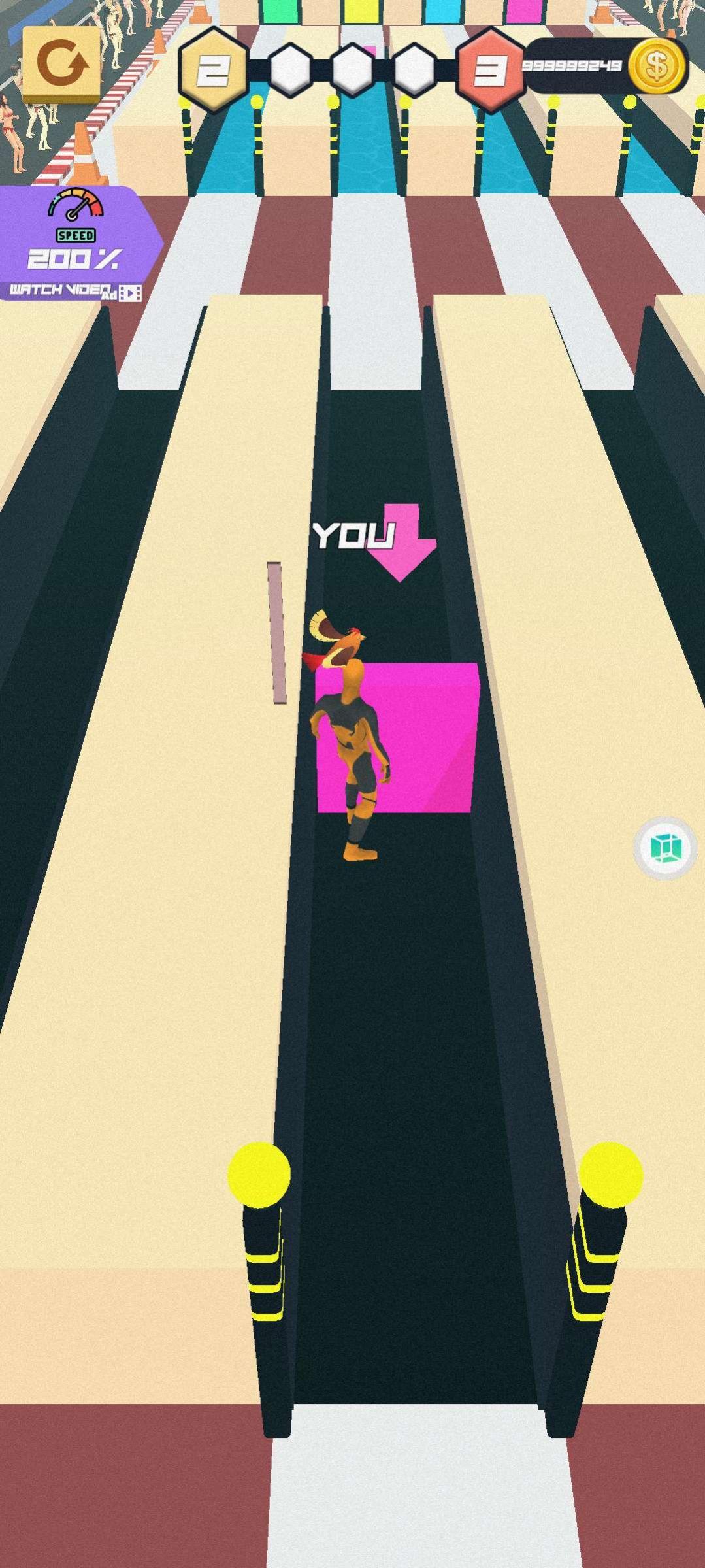 1、魔性搞笑跑酷类游戏,玩家控制肌肉男在场景里与其他的人竞争;