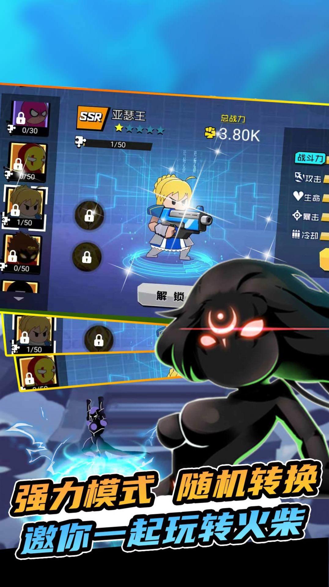 1.这是一个火柴人射击游戏。简笔画游戏中简笔格的选择,不同的武器解锁。