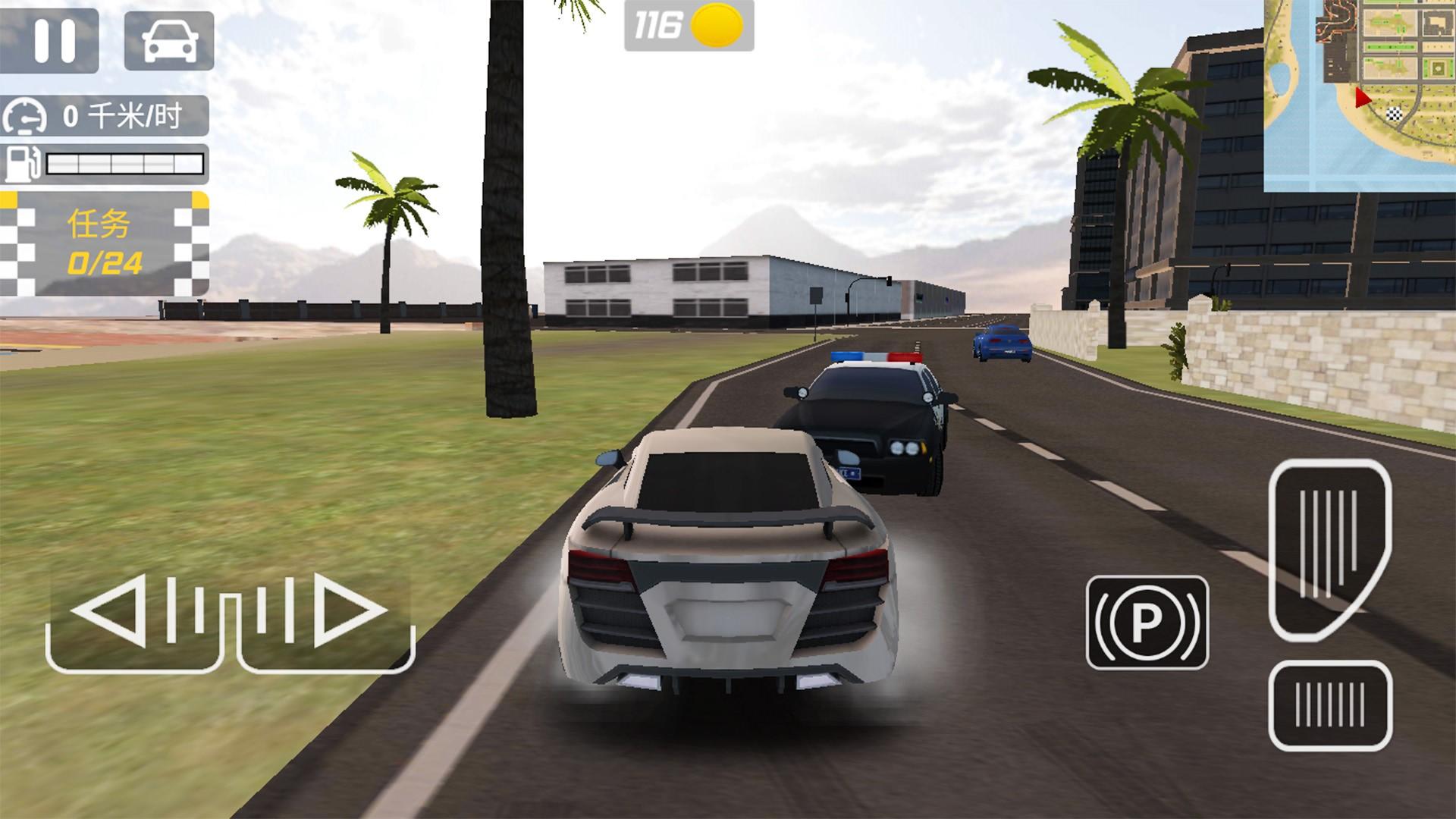 2、玩家可以通过右上方的小地图查看自己当前的位置,根据道路的指示进行驾驶。