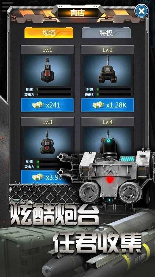 作为战争指挥官的你,首要任务就是保护要塞,这也是你最重要的任务!通过放置炮台的方式来阻挡僵尸的进攻,当你成功建造好防御措施之后,它们会自动攻击,无需你另外的操作,并且在你离开之后它们也会不辞辛苦的继续工作,为你持续带来金币收益!