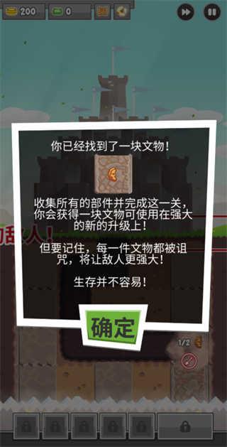 1、第一波,先向左挖,然后拐弯向右挖,获得第一块文物碎片,获得碎片后敌人会更强大,你需要在上方拐角和右下拐角配置火塔来消灭敌人。