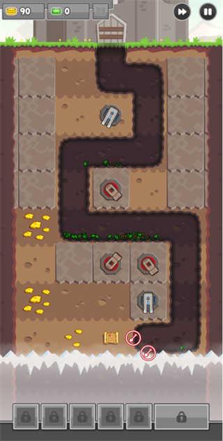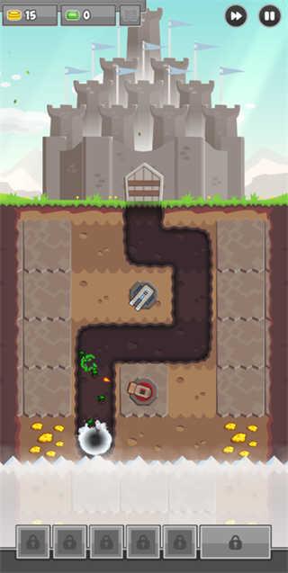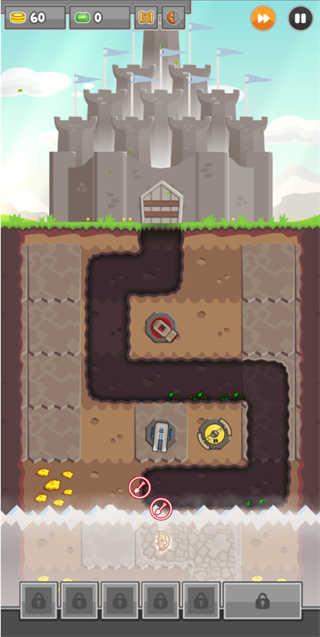 挖掘防卫者(Digfender)是一款非常有创意的塔防游戏。在这款游戏中,玩家需要保卫自己的城堡,挖掘地下,并建立防御塔来攻击敌人,从而摧毁他们。各种黄金和道具要及时挖出来,这样你就可以多造塔了。游戏过程超级有趣。能否守住城堡取决于你的策略。