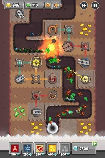 尽管这是一款挖掘类的塔防游戏,玩家所挖掘出来的道路便是敌人前进的通道,这使得玩家在挖掘到期间需要有所注意,这并不是让你在固定路线中搭建防御塔迎击敌人。