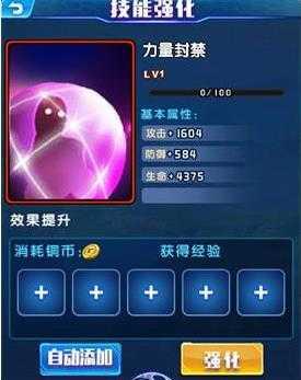 2、技能强化:通过吞噬低品质的技能或者技能值来获得技能经验值,技能强化会提高技能的各项属性