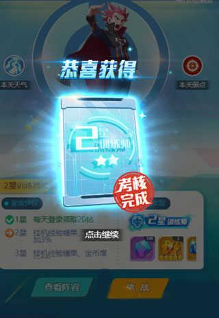 1、在【战斗】系统里,训练师们挑战成功每个关卡,都会获取到经验糖果,并且会时刻进行资源生产,关卡越高,每分钟获得的资源越多,最长可积累10小时资源(随着VIP等级提升,积累的时间越长),训练师们也可以在【战斗系统】左下角时刻收取资源。另外可以搭配【快速战斗】,每次可以额外获得2小时的资源。
