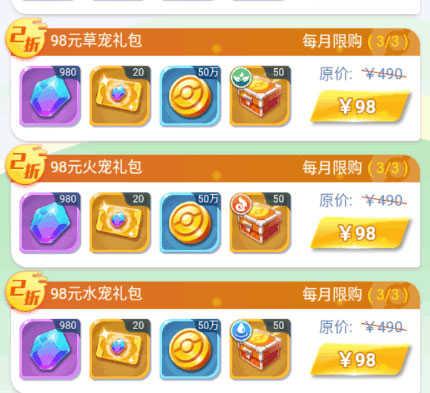 付费礼包有许多的宠物可以获得,给大家推荐几个性价比高的礼包: