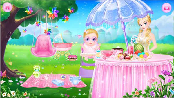 3、公主今天要带小宝宝去户外野餐,小宝宝当然要打扮的美美哒,为她挑选一条最漂亮的小裙子,戴上首饰和眼镜,准备出发吧;