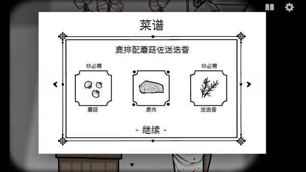 来到厨房,和蟆厨师对话。在得知客人来了后,蟆厨师委托我们去寻找制作晚饭的新鲜食材。(可以通过查看菜谱,了解到要准备哪些食材。)