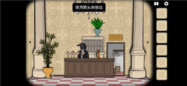 2、进入游戏后,玩家可以通过箭头来移动,点击【kitchen】黄色牌子里面的任何物品即可进入厨房