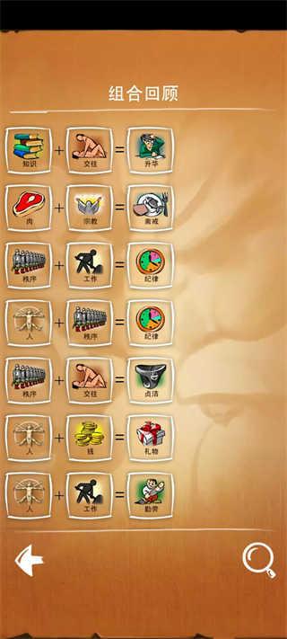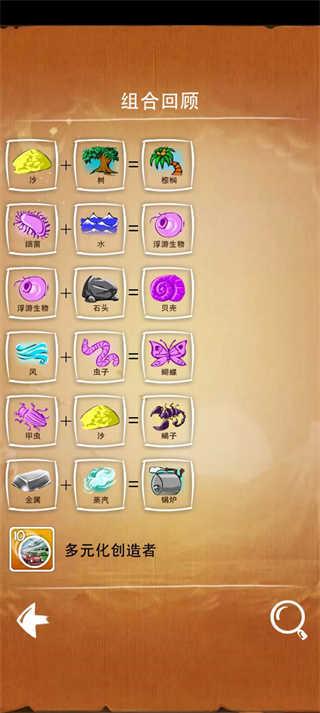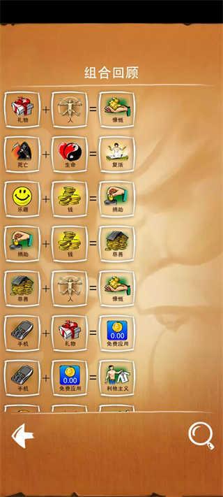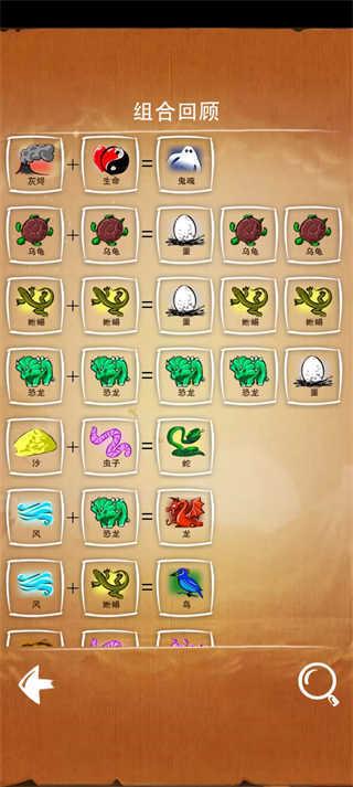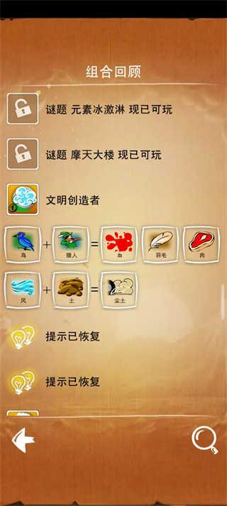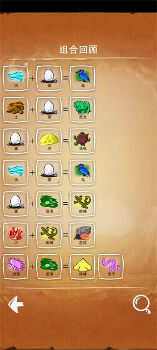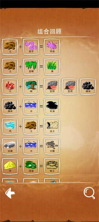 游戏有主线模式,任务模式和猜谜模式三种玩法。主线模式是围绕四种基础元素推衍万物的生成模式;任务模式是根据任务要求在指定几种元素中推衍出任务要求的物品;猜谜模式:从基础元素中找出谜底要求元素的推衍途径。这三种模式都可谓充满了挑战,主线考验我们的自由发挥,任务考验我们的组织能力,猜谜考验我们的逆向思维。