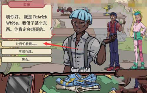 4、跳过之后,然后就是我们第一个卖家上门了,我们需要根据点击让我看看;