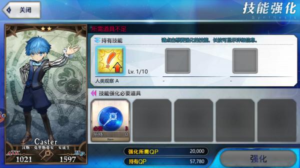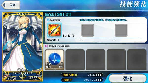 通过消耗相应的技能升级素材和QP,使从者的一项技能获得等级的提升。技能强化的过程不可逆。无论任何从者的任何技能,初始均为lv1,上限为lv10。