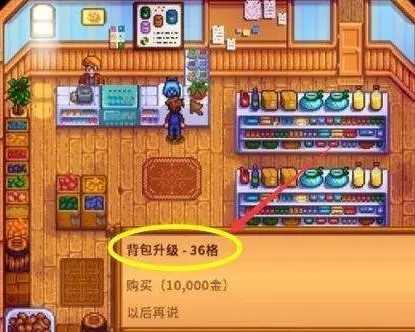 再之后是36格背包,当你升级到24格背包之后,就可以花费 10,000g 解锁背包的第三排格子再次多出12格 ,依旧是在皮埃尔的杂货店购买。