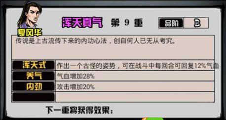 9重属性值(与之前版本差别):【引气归元】引导经脉归入丹田,气血增加20%
