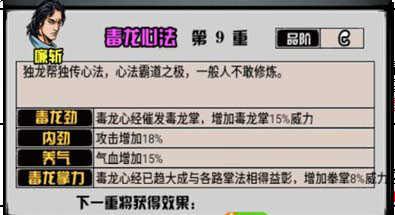 【毒龙掌力】毒龙心经已趋大成与各路掌法相得益彰,增加拳掌8%威力