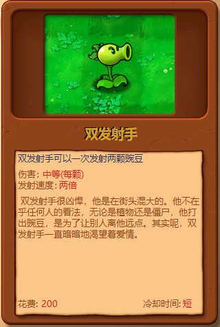 peashooter豌豆射手:每次攻击射出一发豌豆。
