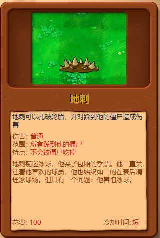 3地刺不用说,经常被冰车压和红眼砸,需要经常换。要注意一点,不必少了颗牙就立即换,只要有把握,最好只剩一颗牙时才换。一来省阳光,二来缺牙的可以拖延更多的僵尸,多刺一些僵尸总是好的。