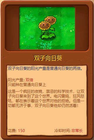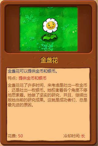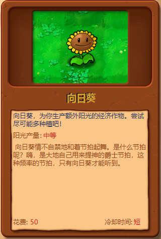 sunflower向日葵:每24秒生产一个中型阳光(25阳光值)。