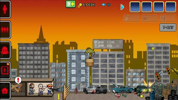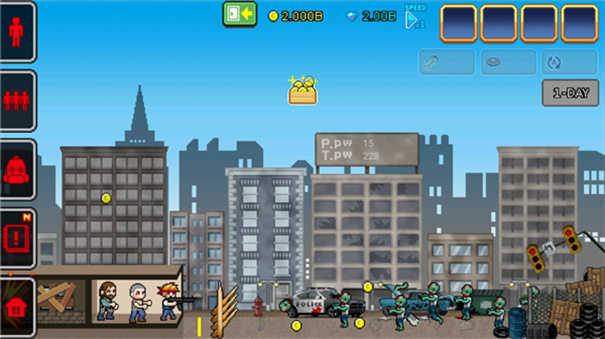 2、这款游戏的操作简直不要太简单,虽然主角手里拿着枪射击,但是1不用瞄准,2不用走位,只要手指点击屏幕,主角就会开火攻击前来侵略的僵尸。击杀僵尸掉落的金币也不用自己去捡,金币掉落后过几秒系统会自动捡起金币的。再有就是游戏中道具的使用,游戏中通过升级解锁的道具会出现在屏幕的右上角,点击就可以使用,不过道具都有冷却时间。