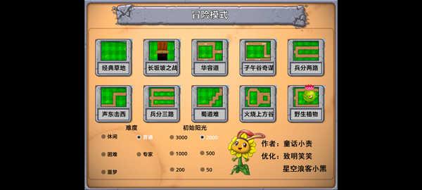 2、进入游戏后,选择游戏难度,以及初始阳光;