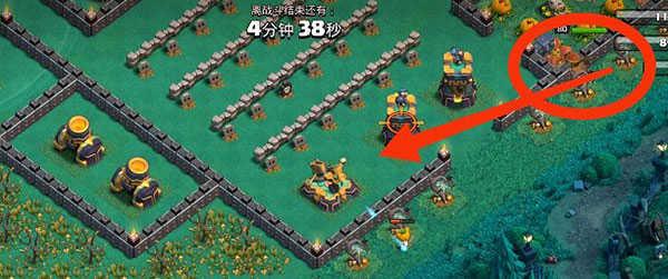 4、女王会在拆掉建筑工人小屋后去拆俩炸弹塔和x弩,此时上方的俩女武神还不在这三个建筑攻击范围之内,所以可以极好的保持良好血量。