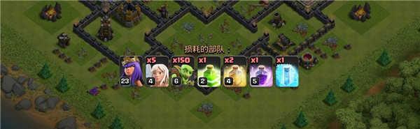 另外,这套暴力狗球流是带了天女的,如果弓箭女皇级别太低、正在休息或者正在升级的话,可以将弓箭女皇、天使和炸弹人改成气球和少许的亡灵。