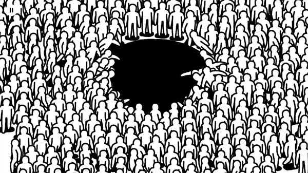 1、打开进入游戏,玩家直接进入游戏短片式的游戏过程中,面对黑白世界与一群小人;