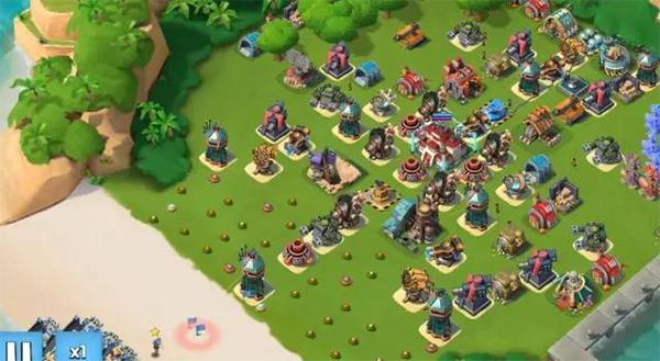 2、火箭发射器、震爆火箭炮、迫击炮是对人海流威胁较大的群伤防御武器,所以进攻思路就是将这些群伤防御武器先拆掉,但是目标这么多,怎么快速拆完呢,进攻顺序很重要。