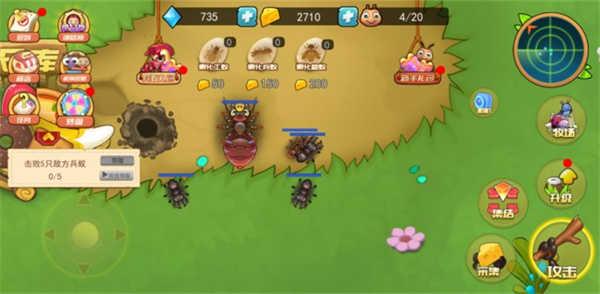 6、组合升级自己的蚂蚁王国,挑战不同的作战冒险的竞技地图。
